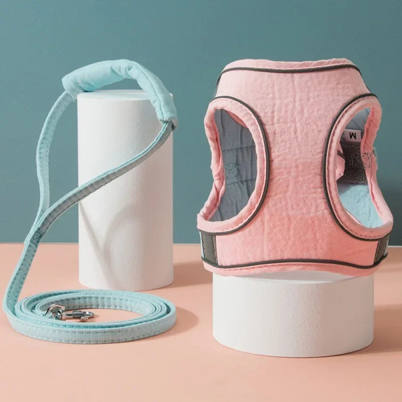 [ Amazing Fashion Pet Dog Cat Vest Harness ] - Exquisite Color-Matching Design.Cute small dog cat harness vest,matching the same color leash.Love family,Love pets.