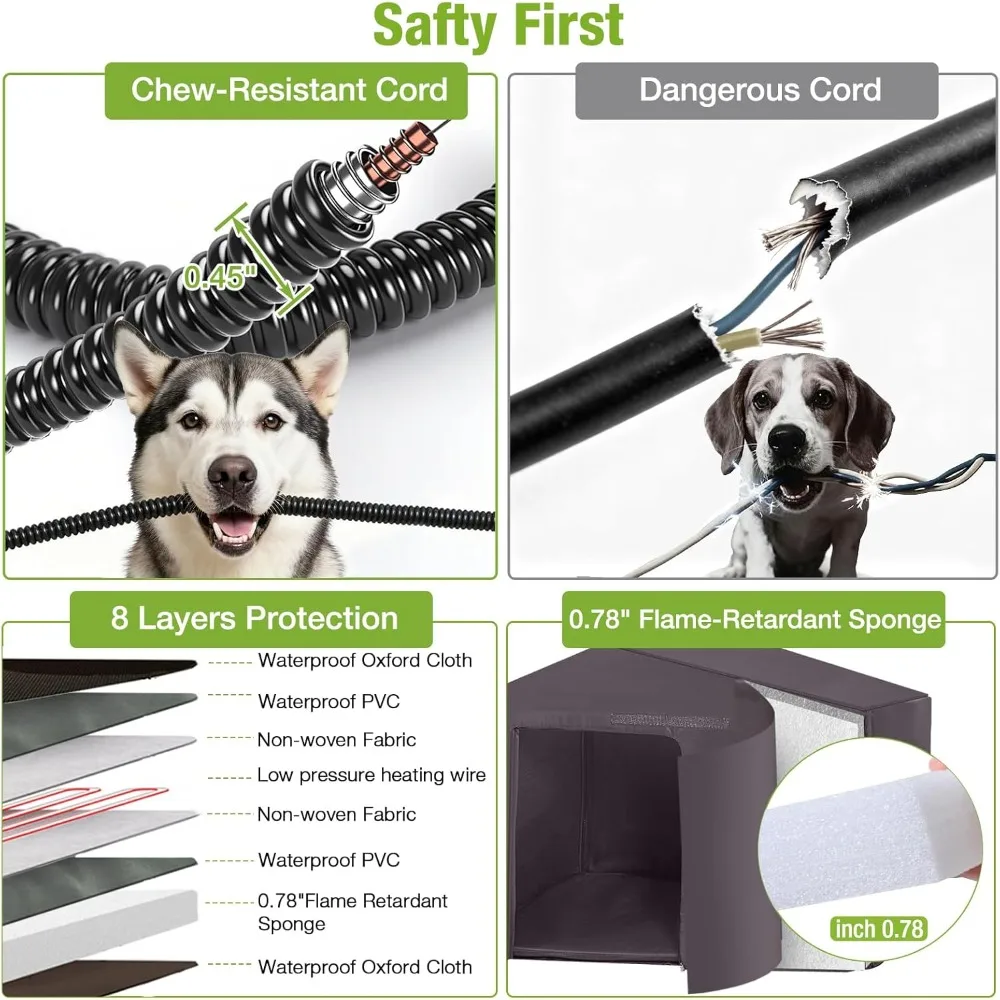 Insulated Outdoor Dog House with Heater, Metal Frame, and Chew-Resistant Cord, 6-Sided Thermal Large