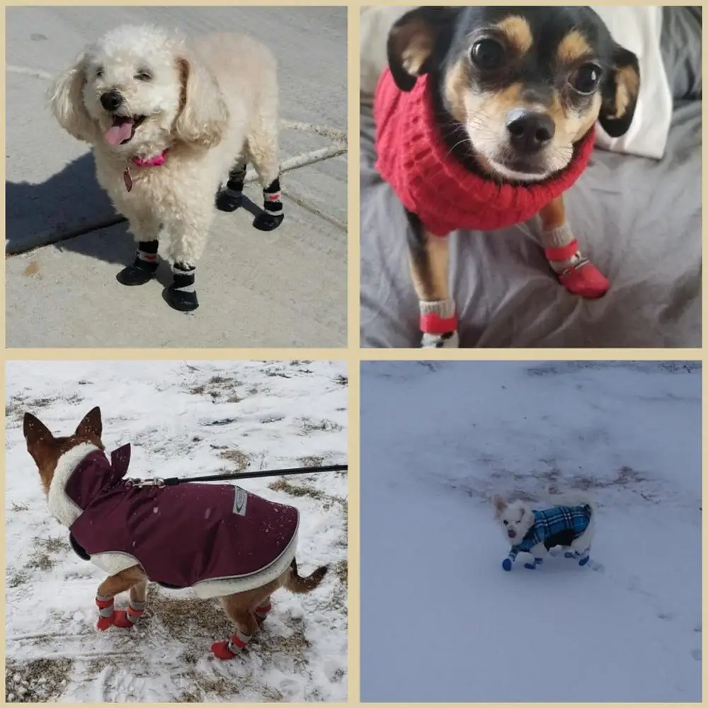 3.Gentle on Dog's Skin: These waterproof dog shoes are the perfect addition for keeping your dog's paws safe and cozy. The soft and comfortable material with a skin-friendly inner lining provides warmth and breathability, while the elastic top provides a warm fit, giving a secure feeling to your pet