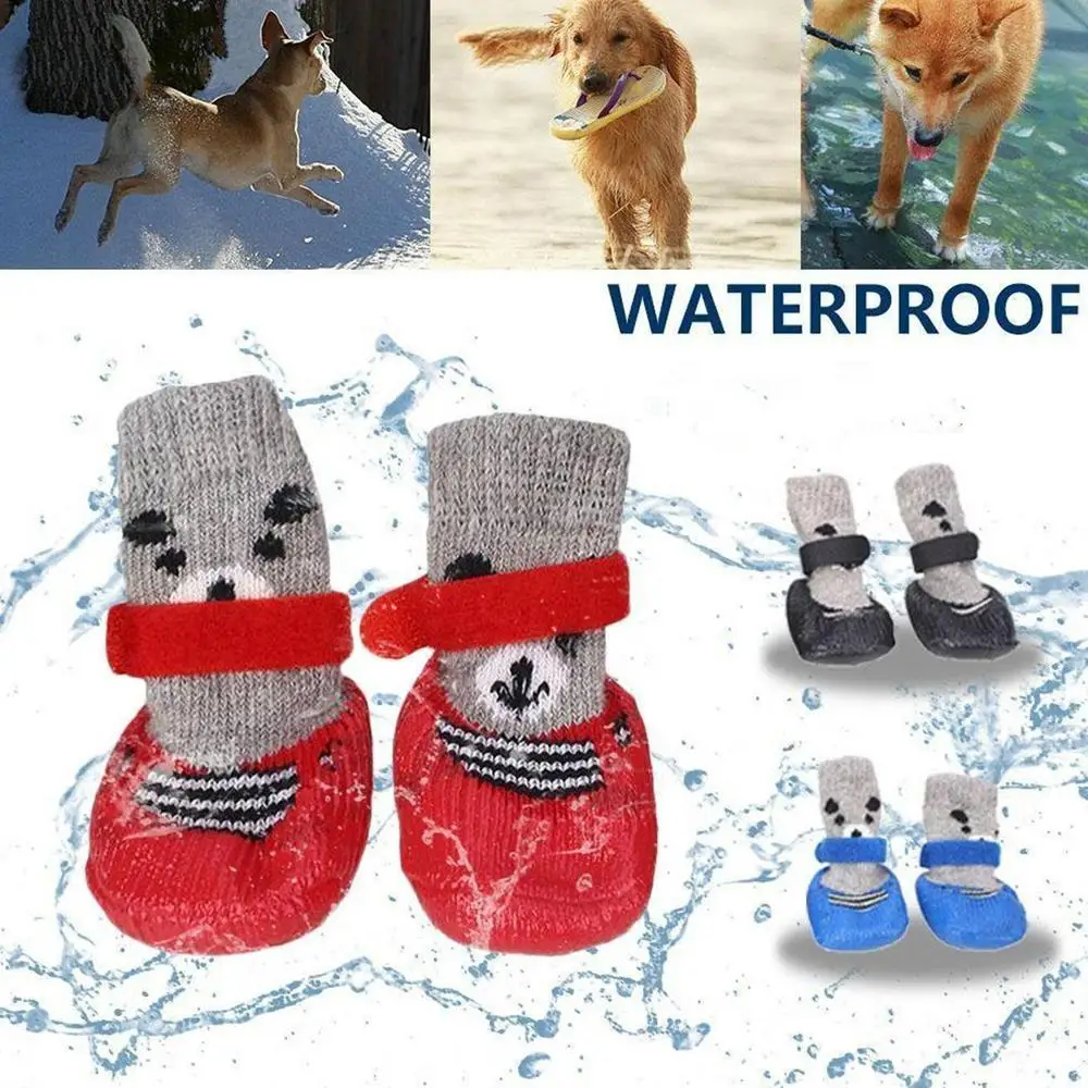 Waterproof Dog Shoes Non Slip Puppy Shoes Breathable Dog Booties Dog Adjustable Strap Paw Protector For Hot Pavement Snowy Day