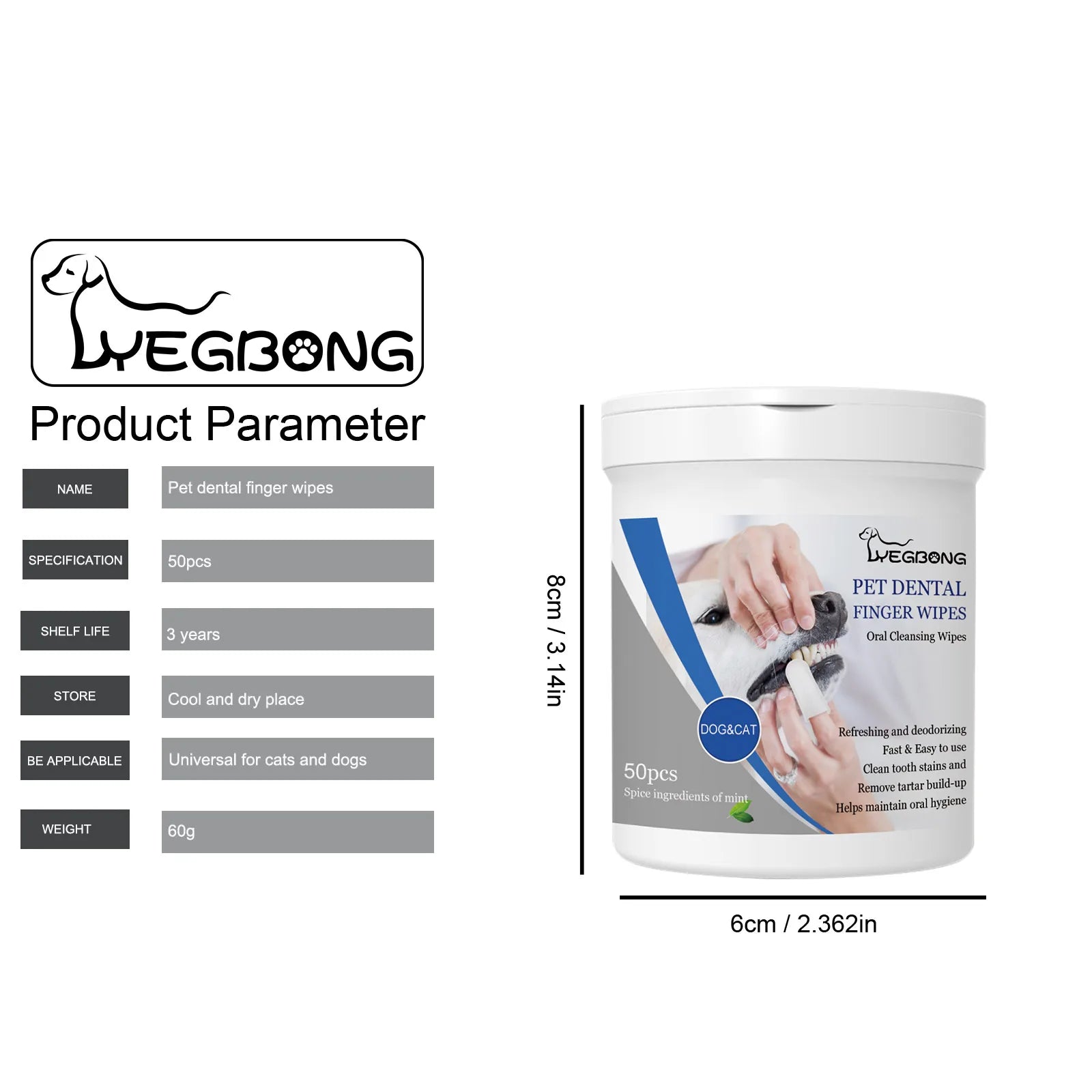 Yegbong 50pcs Pet Teeth Cleaning Finger Wipes Cat Dog Remove Mouth Bad Breath Tartar Tooth Yellow Care Pet Oral Cleanse Wipes